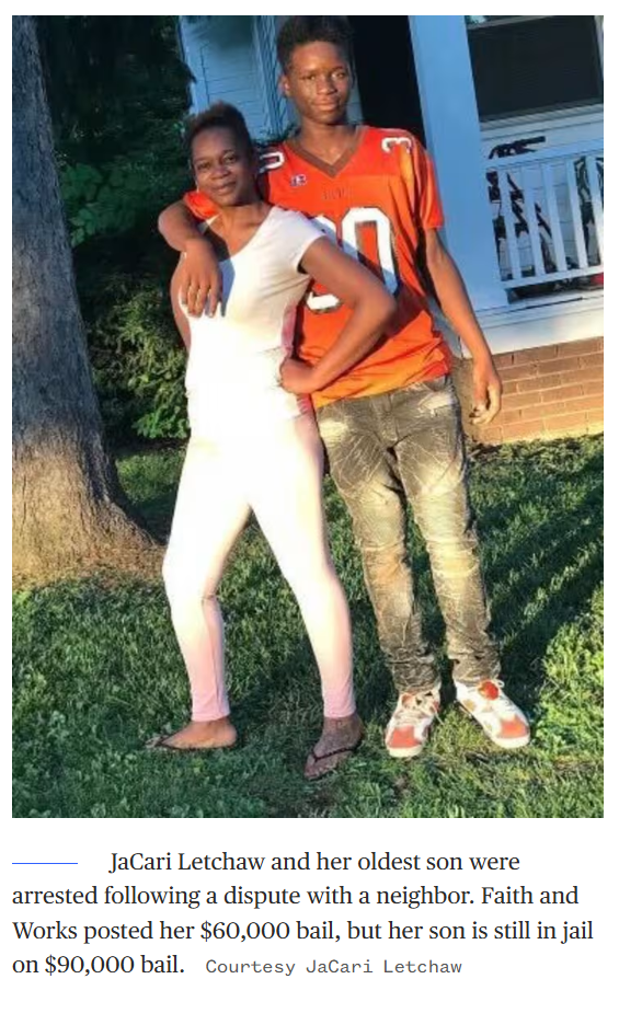 Letchaw’s oldest son, who was with her during the neighborhood dispute, was also arrested and is currently in jail because the family can’t afford to post his $90,000 bail.