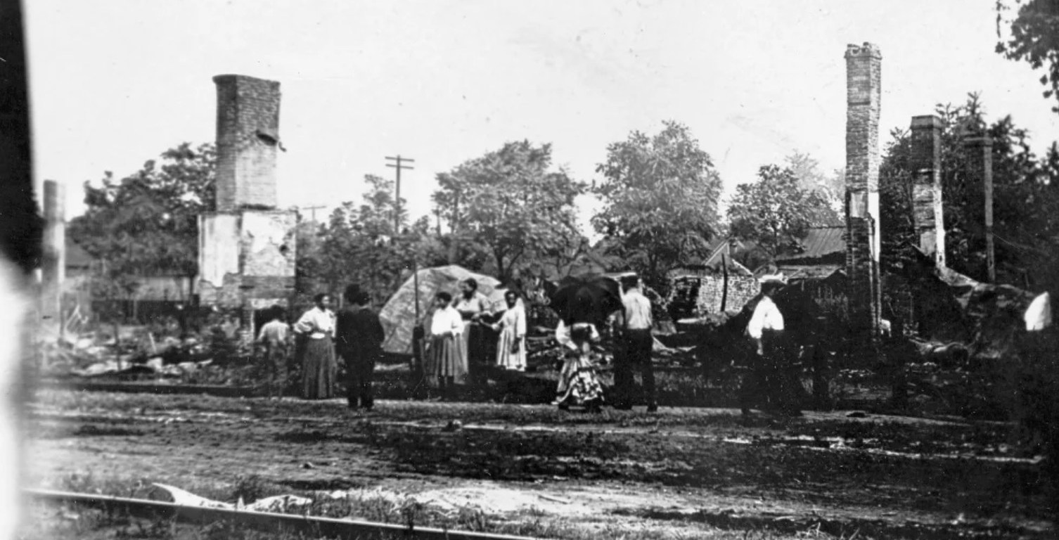 In 1908, from Aug. 14 to 16, a mob of about 5,000 white people stormed Black neighborhoods to find and lynch two Black men, one charged with murdering a white man and the other with raping a white woman. When the mob learned the men had been secretly transferred to a jail in another city, it began canvassing Black neighborhoods to destroy businesses and homes. Authorities had to call on the state’s National Guard to quell the riot. At least seven black residents were killed, by most accounts, as well as several white people.