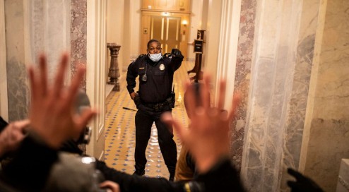 Capitol police officer praised as hero for diverting mob from Senate chamber